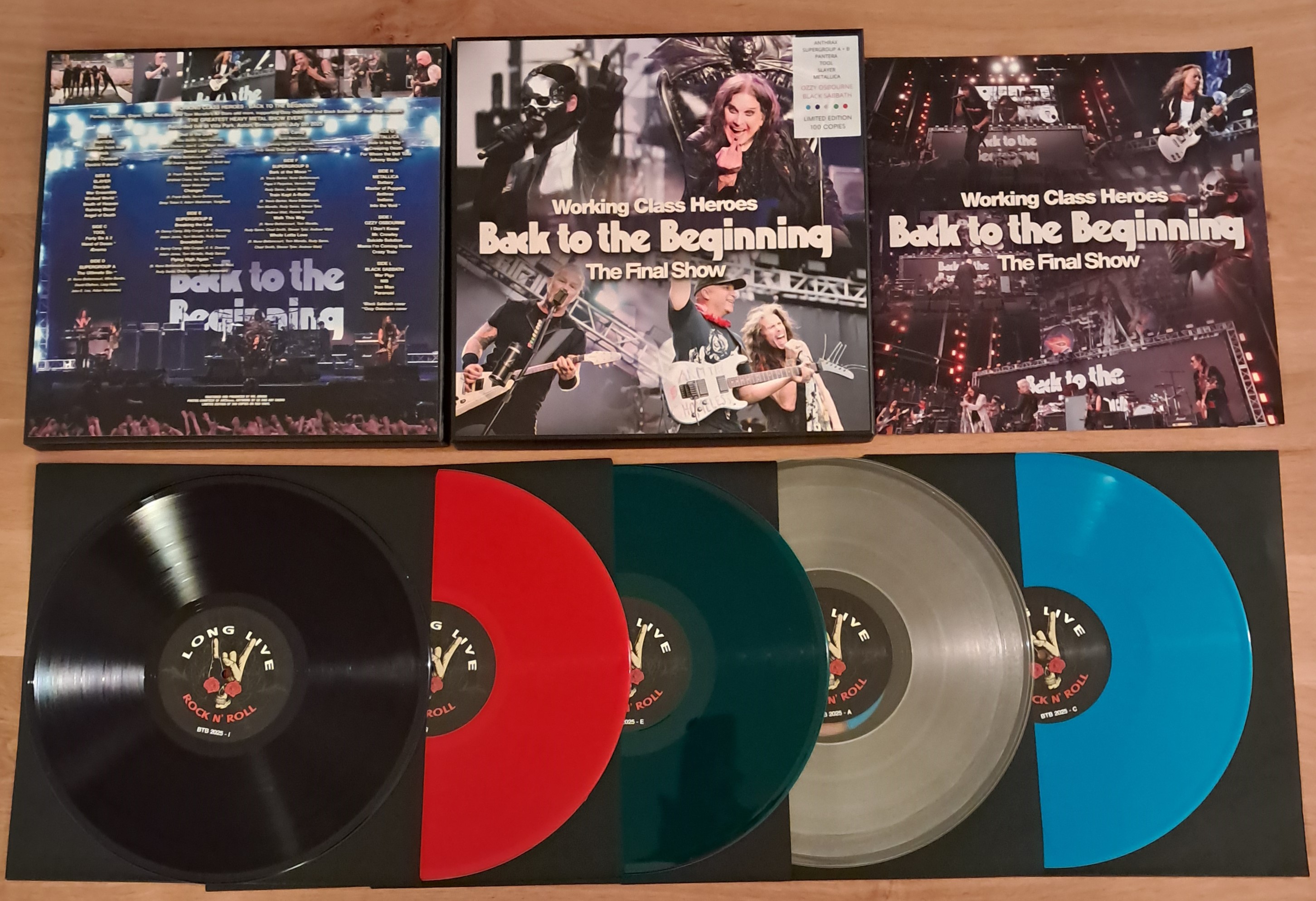 Box set includes 5 discs and 8-pages booklet. Sticker on front of box lists Anthrax, Supergroups A and B, Pantera, Tool, Slayer, Metallica, Ozzy Osbourne and Black Sabbath(with Ozzy and Sabbath highlighted in red)